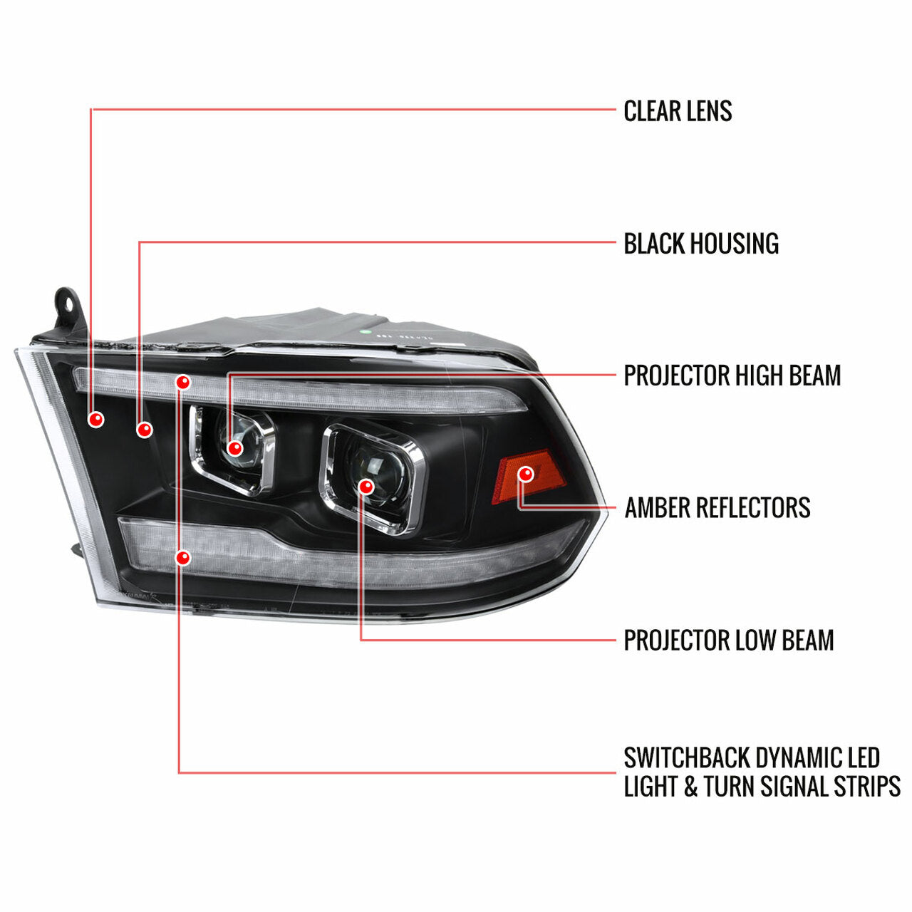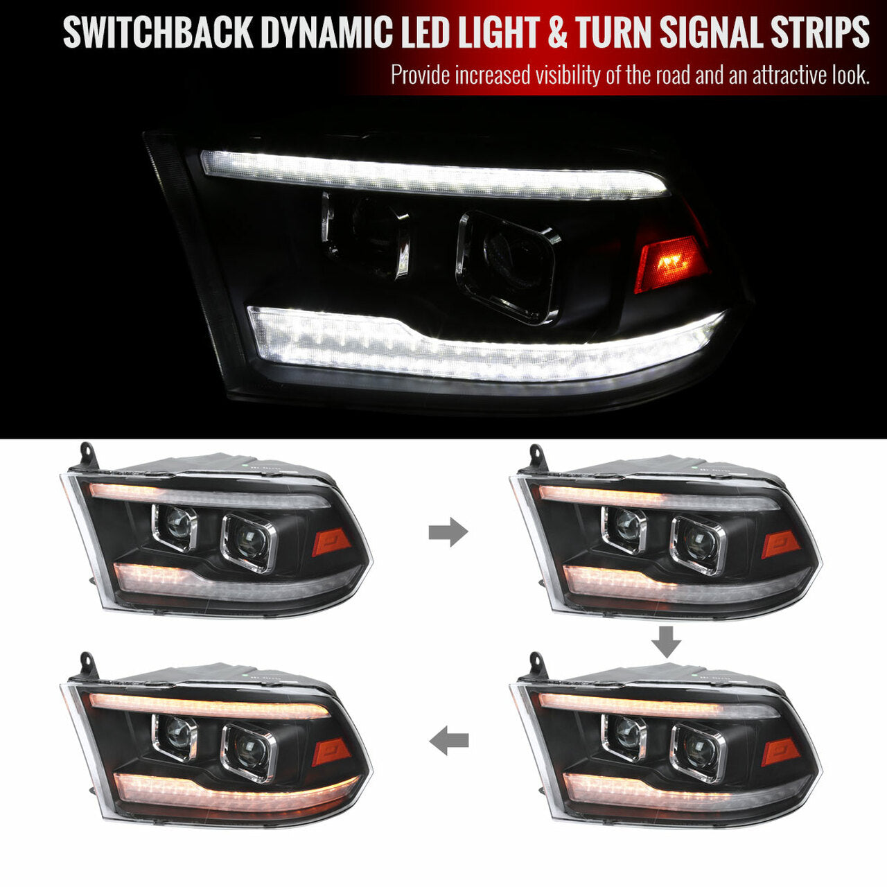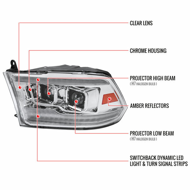 2009-2018 Dodge RAM 1500 / 2019-2021 RAM Classic / 2010-2018 RAM 2500 3500 Switchback Sequential Projector Headlights