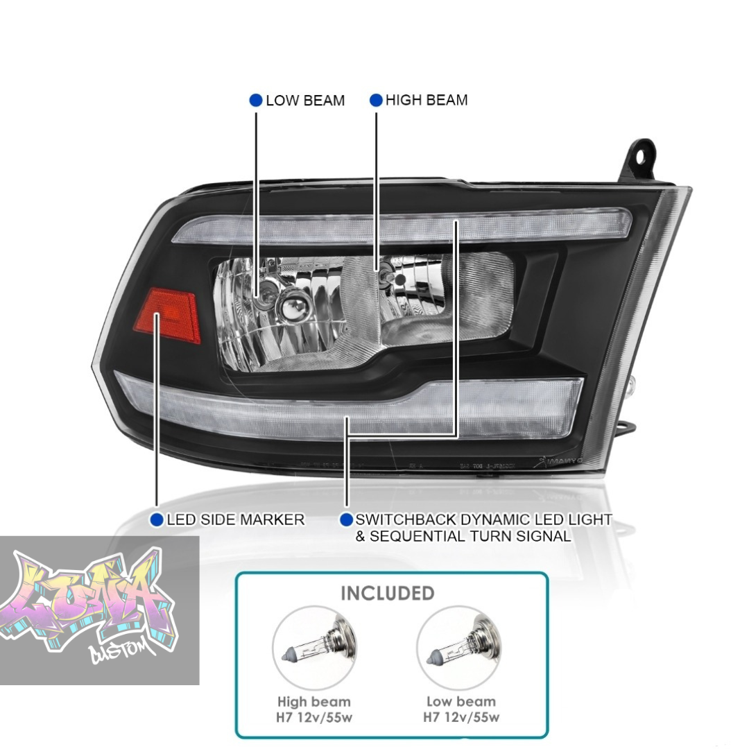 2009-2018 Dodge RAM 1500 / 2019-2021 RAM Classic / 2010-2018 RAM 2500 3500 Switchback Sequential Reflector Headlights