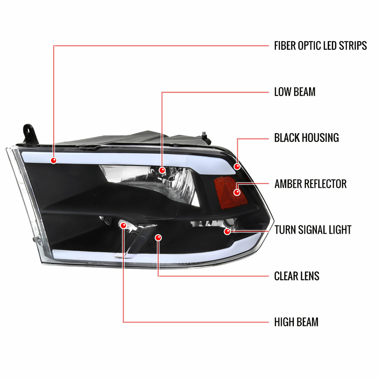 2009-2018 Dodge Ram 1500 2500 3500 Quad Style Headlights with LED Tube