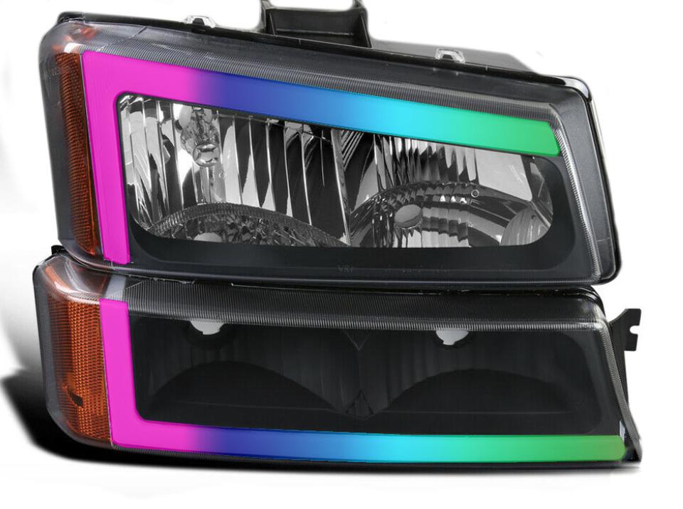For 2003-2007 Chevy Silverado 1500 2500 3500/Avalanche LED Bar Black Headlights Big C bar